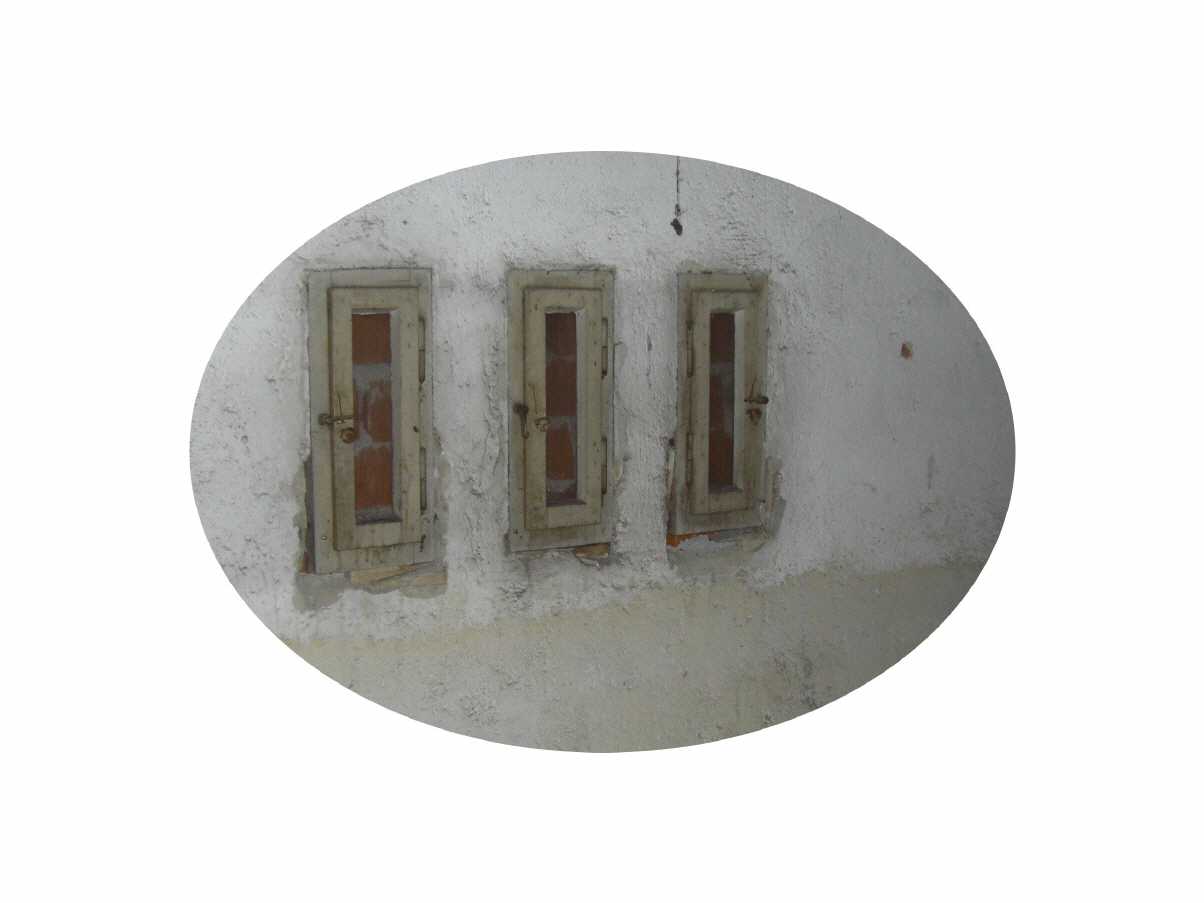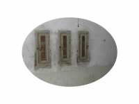 Kleine Dachgiebelfenster wurden zugemauert und verschwanden hinter der Fassadenisolierung; hier hat sich offensichtlich der Austausch der Fenster finanziell nicht gelohnt.