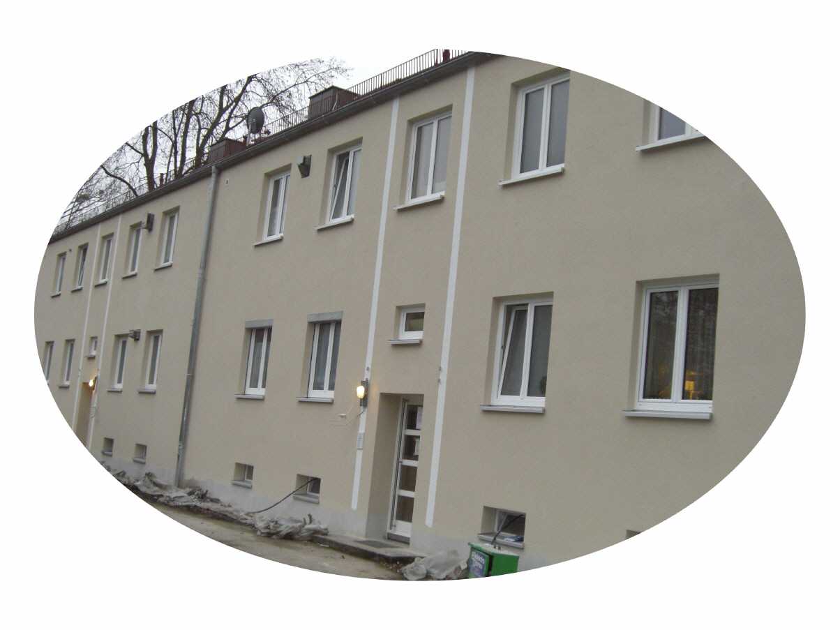 Der Block Rubinstraße 13 und 15 ist vom Baugerüst befreit, die Außenputzarbeiten sind abgeschlossen, die Zwangsbelüftungen haben den bislang noch fehlenden Luftzufuhrregler erhalten. Weiter ist an der Nordseite des Hauses ein Außentemperaturfühler angebracht, der die Heizungszentrale witterungsbedingt steuern wird.