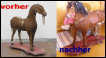 Das aus den 20er Jahren stammende Schaukelpferd bekam ebenfalls neue Glasaugen, da es einäugig war. Die fehlende Mähne wurde ergänzt. Ebenso erhielt es passende Lederohren. Das Holzbrett wurde farblich aufgefrischt, Sattel und Teile des Zaumzeugs ergänzt. Das Pferdchen ist nun wieder komplett, es hat nichts von der Ausstrahlung eines alten Spielzeugs verloren.
