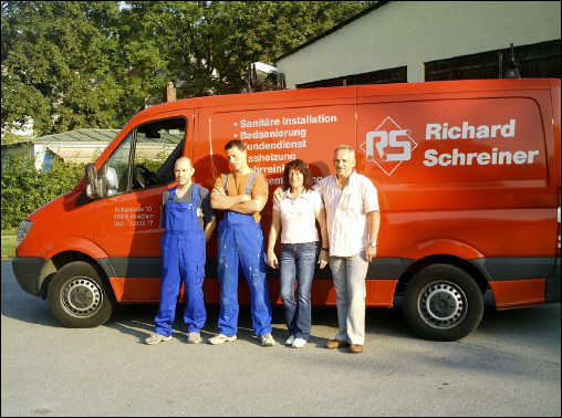 Apropos Team, er hat äußerst treue Mitarbeiter: Seine spanische Ehefrau Maria ist seit Dezember 1985 für Büro und Laden zuständig. Marias Sohn, Michael Pankiewicz, ist seit dem 2. Oktober 1989 als A-Monteur im Einsatz und Franz Hoffmann, den Fach-Helfer, gibt es bereits seit dem 10. Januar 1994 im Installationsbetrieb Schreiner. |
