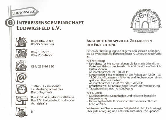 Wir hoffen, dass wir mit unseren Anstrengungen bezüglich des Verkaufs der Siedlung Ludwigsfeld letztendlich doch noch Erfolg haben werden. Wir versuchen bis zum Schluss, den Verantwortlichen verständlich zu machen, dass der Verkauf ein besonderes soziales Konzept erfordert, wie es ein ortsansässiger Bieter schon vorgelegt hat. Ansonsten droht wahrscheinlich in kurzer Zeit das Aus für unsere besondere, historische Gemeinschaft. Die Entscheidung darüber wird voraussichtlich am 3. September fallen.