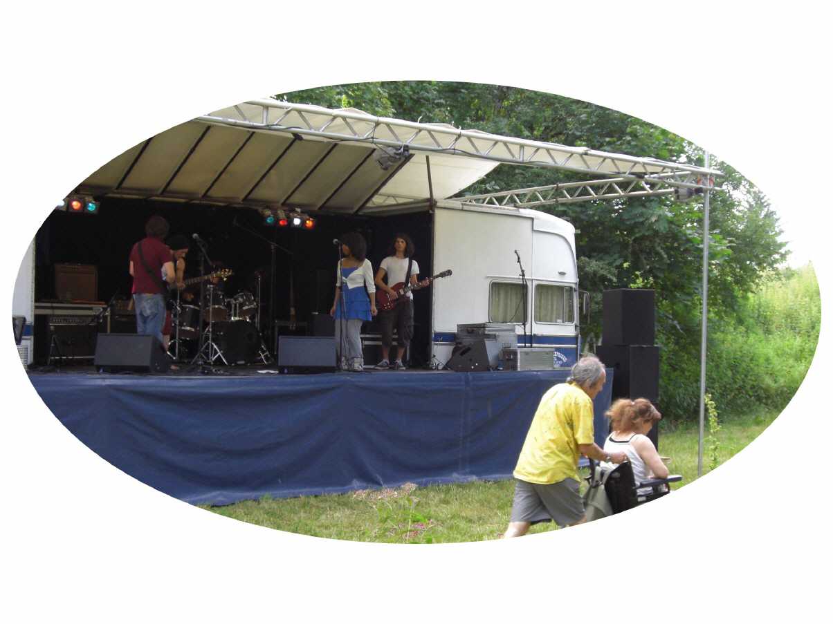 Der jüngste Open-Air-Besucher war erst wenige Tage alt. Er lauschte der Musik und ließ sich die Muttermilch schmecken. Die schon größeren Kinder hüpften ausgelassen im Takt der Musik oder spielten auf der Wiese. Und die Erwachsenen ließen sich neben dem Musikgenuß eine frische Maß und Gegrilltes schmecken. Sie sangen die bekanntesten Songs mit und wen es gar nicht mehr auf der Bierbank hielt, der legte einen heißen Rock’n’ Roll auf die Wiese…
